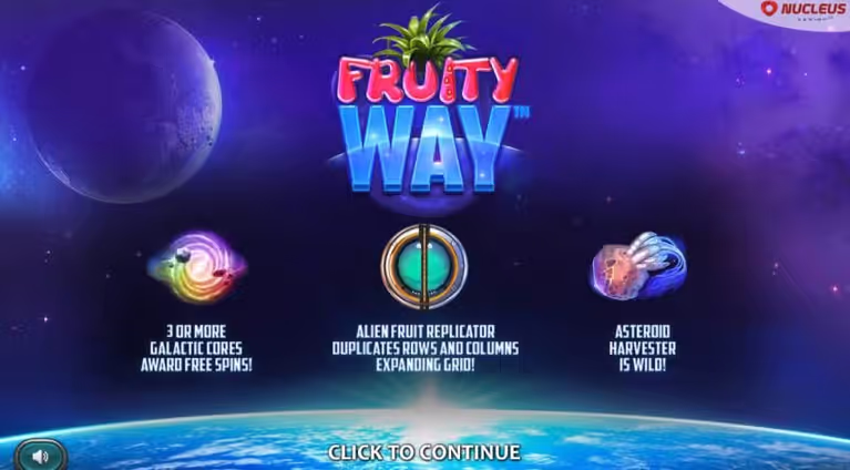 Fruity Way slot game is as you may have guessed a fruit themed online video slot crafted and released by Nucleus Gaming who have always explored this niche market particularly well with innovative and unusual gameplay mechanics.